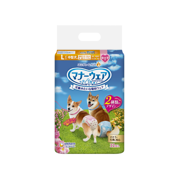 「マナーウェア女の子用」は、生理の時に、お出かけやお散歩時のマーキングやそそうに安心です。 旅行やドライブなど長時間の外出にもモレ安心の吸収設計です。 お部屋にいるとき、お留守番のときに使用することもできます。 |