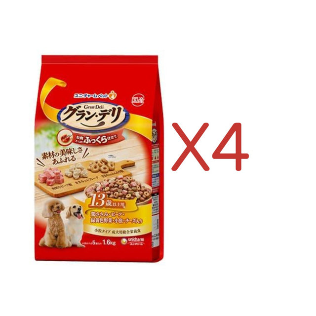 グラン・デリ ふっくら仕立て 13歳以上用 鶏ささみ・ビーフ・緑黄色野菜・小魚・チーズ・角切りビーフ粒入り 1.6kg - ケース販売(1.6kg x4) -