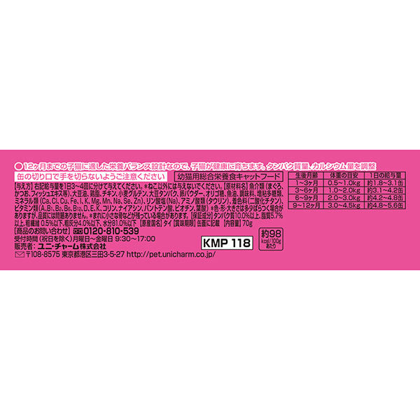 12ヶ月までの子猫に適した栄養バランス設計なので、子猫が健康に育ちます。 |