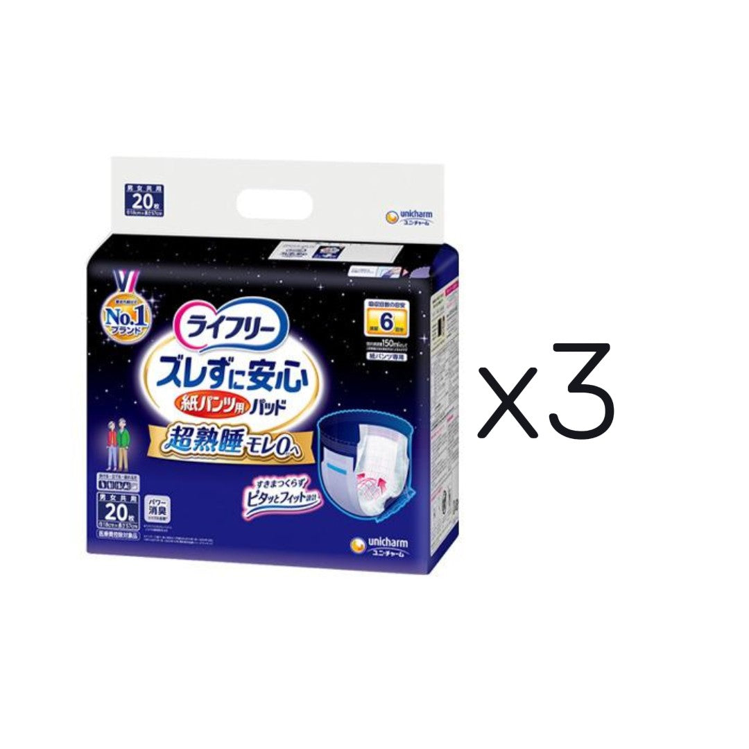 ライフリー ズレずに安心 紙パンツ専用尿とりパッド 夜用 6回吸収 20枚 - ケース販売(20枚×3袋) -