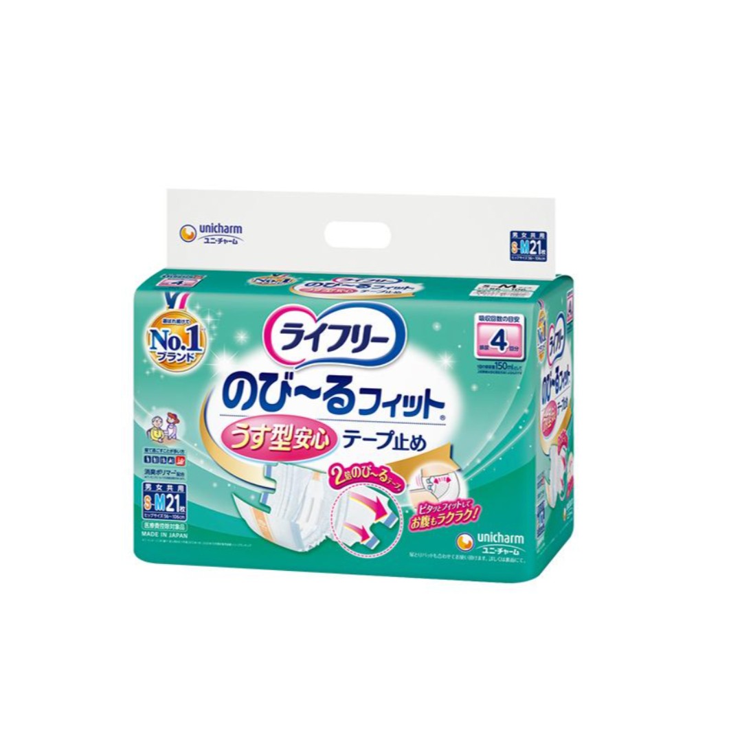 ライフリー のび~るフィット うす型安心 テープ止め 4回吸収 S~Mサイズ 21枚 - ケース販売(21枚×4袋) -