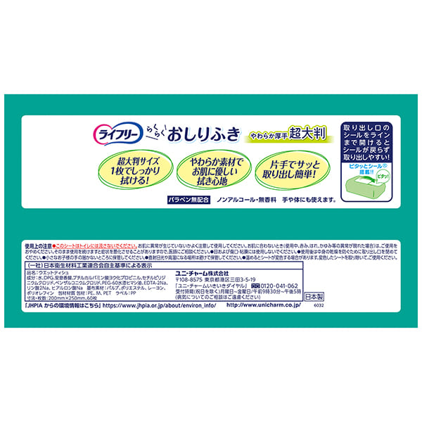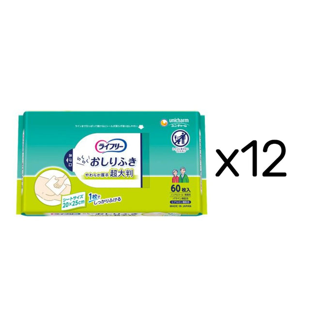 ライフリー らくらくおしりふき超大判 60枚 - ケース販売(60枚×12袋) -