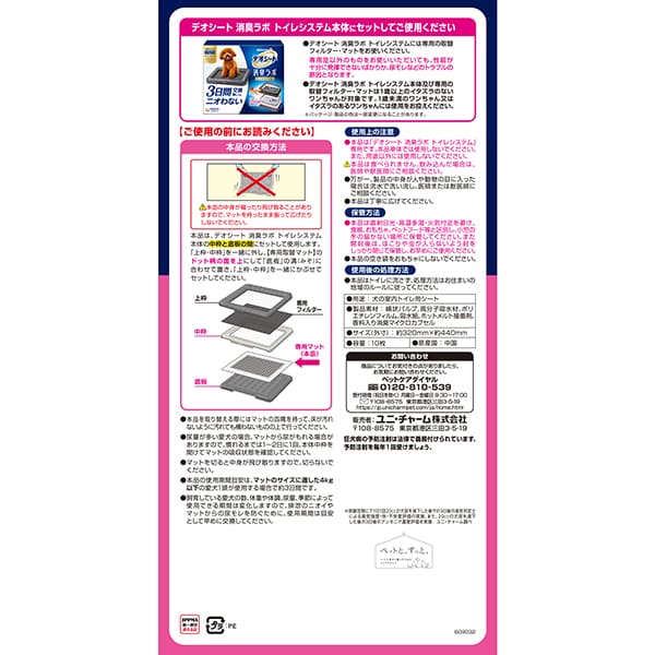 - ●本品は「デオシート消臭ラボトイレシステム」専用です。本品単体では使用しないでください。また、用途以外には使用しないでください。
